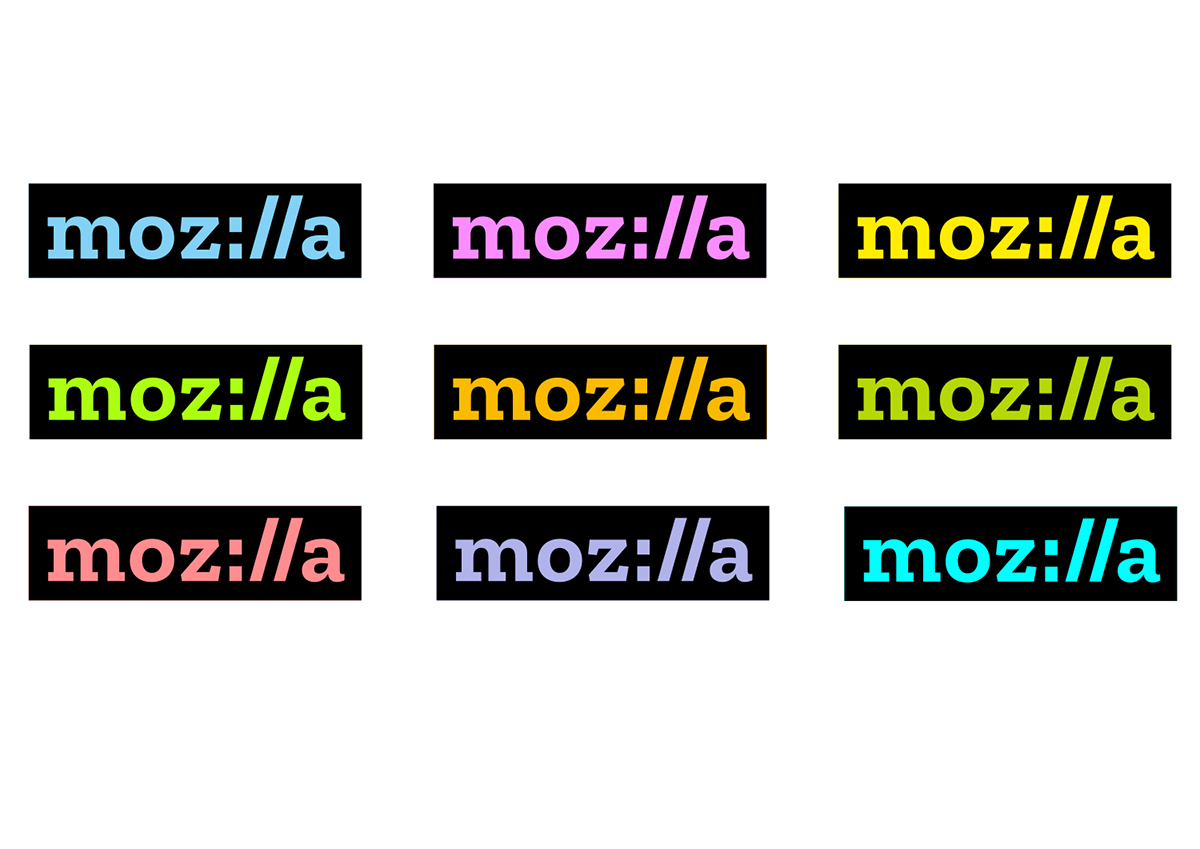 Ещё пример. Mozilla Foundation в 2016 году выбирала логотип. Это компания, которая разрабатывает браузер Mozilla Firefox. Один из вариантов выглядел так. Формальная игра с декором.