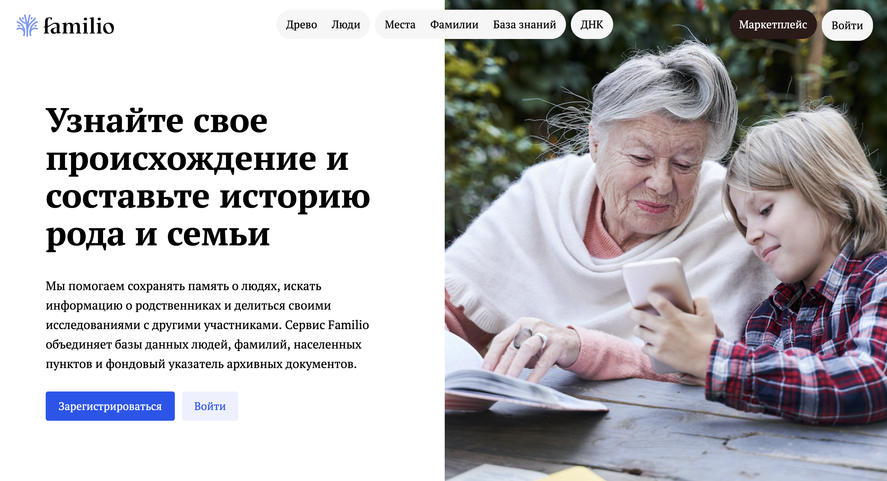Familio — самая большая база генеалогических данных в России. Сервис меняет отношение к самой сути составления родословной и поиска своих родственников. Тут в отрытом доступе огромная база архивных документов, населённых мест, поиск по людям и самое главное — всё это не разрозненные источники, а привязанные друг к другу данные.